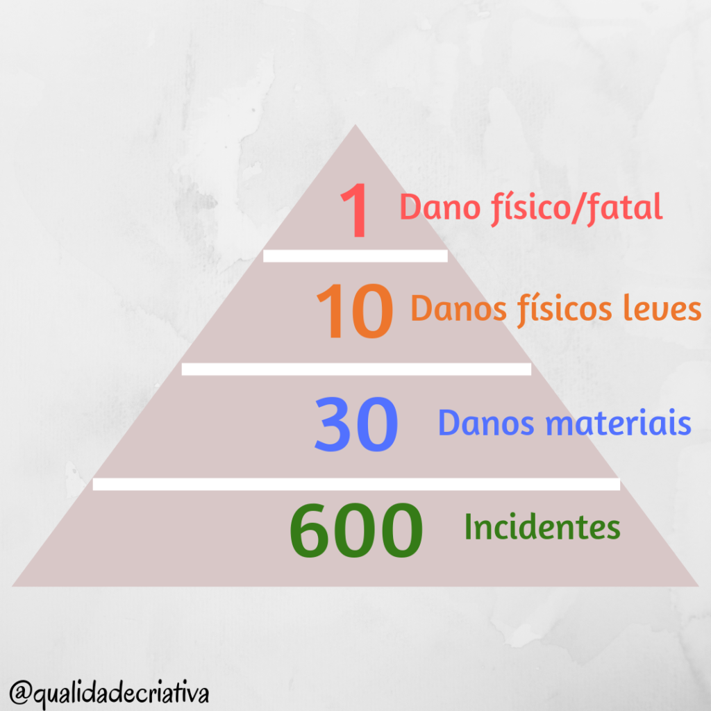 Conhecida como pirâmide de Bird, existe uma teoria nos mostrando que para cada dano físico fatal, 600 incidentes de pequenas proporções ocorreram como alerta.